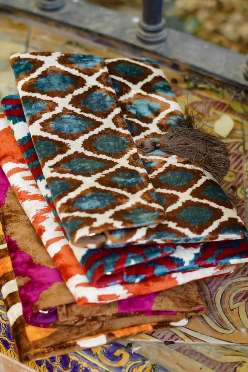 45,00 € IVA INCLUIDONuestra Cartera Ikat Marrón Naranja está fabricada en terciopelo estampado ikat de dos colores. Va forrada por dentro y es ideal para dar a tus looks de invitada un toque de lo más especial. Es un complemento básico que nunca pasará de moda y que podrás usar aunque pasen los años. Tiene un borlón de seda a contraste y un botón central. Disponemos de más estampados para escojas el que más te gusta.