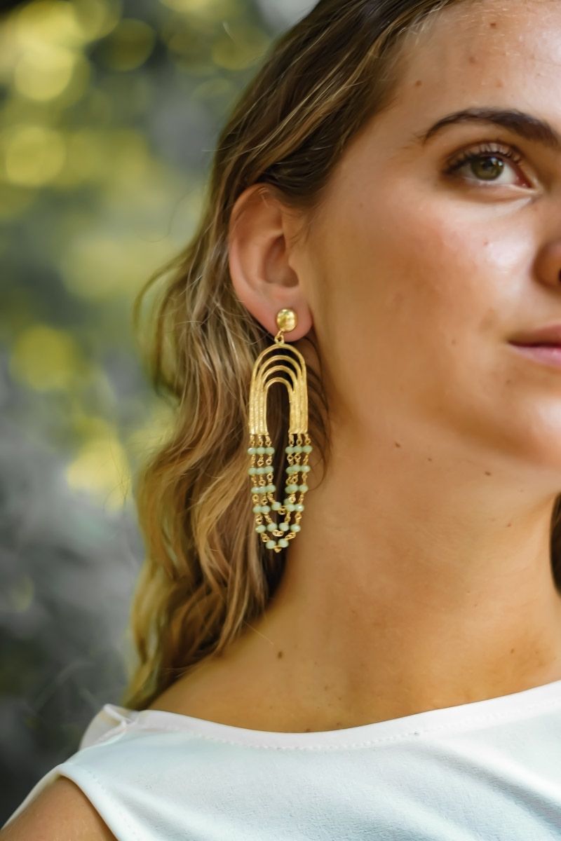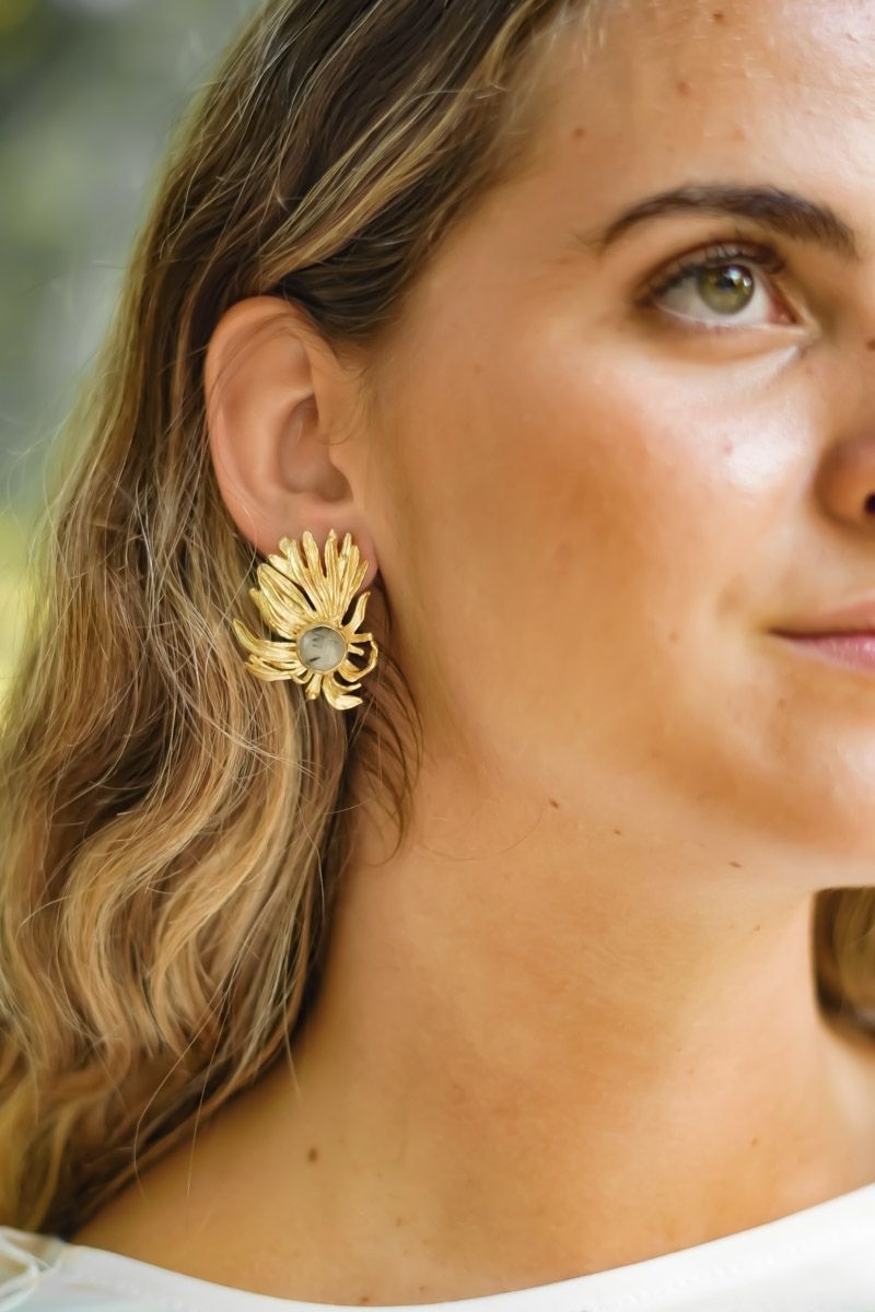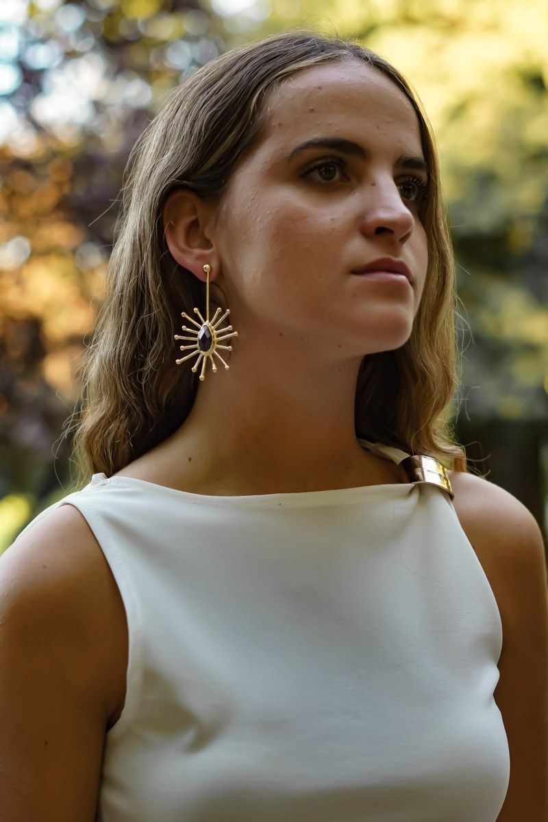 23,00 € IVA INCLUIDONuestros Pendientes Jocasta son ideales si buscas una pieza especial para tus eventos. Compuesto por una pieza central ovalada con piedra de la luna. Engarce brocado y cierre de barra con la parte de atrás alargada que queda detrás del lóbulo. Una de las opciones más elegantes de la colección si buscas una pieza versátil y que vaya con todo. Trae un seguro al final de silicona.