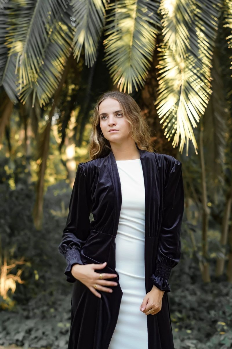 ElKaftán Terciopelo Negroes un kaftán de manga larga confeccionado en tela de terciopelo con forro interior. Escote abierto con corte recto y diseño suelto, ideal para embarazadas. Este producto es Talla Única y da para una S/M.